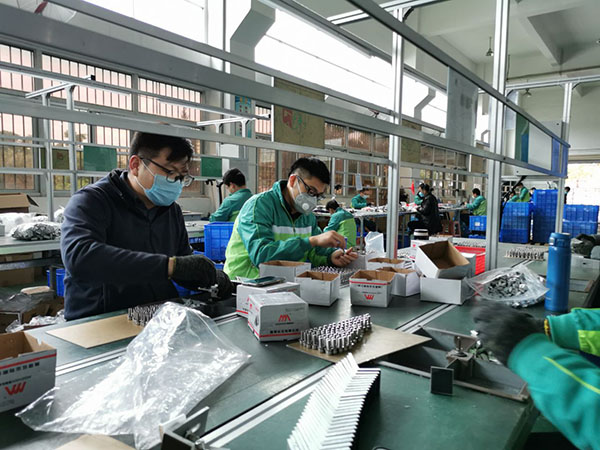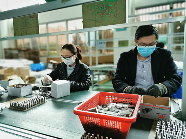 企業(yè)復(fù)工后,重點(diǎn)崗位人員基本到崗,工人們戴著口罩,動(dòng)作麻利地加工,包裝,出庫。整個(gè)產(chǎn)線分工明確,井然有序,有速度有質(zhì)量,從而保證客戶訂單都可以及時(shí)出庫。