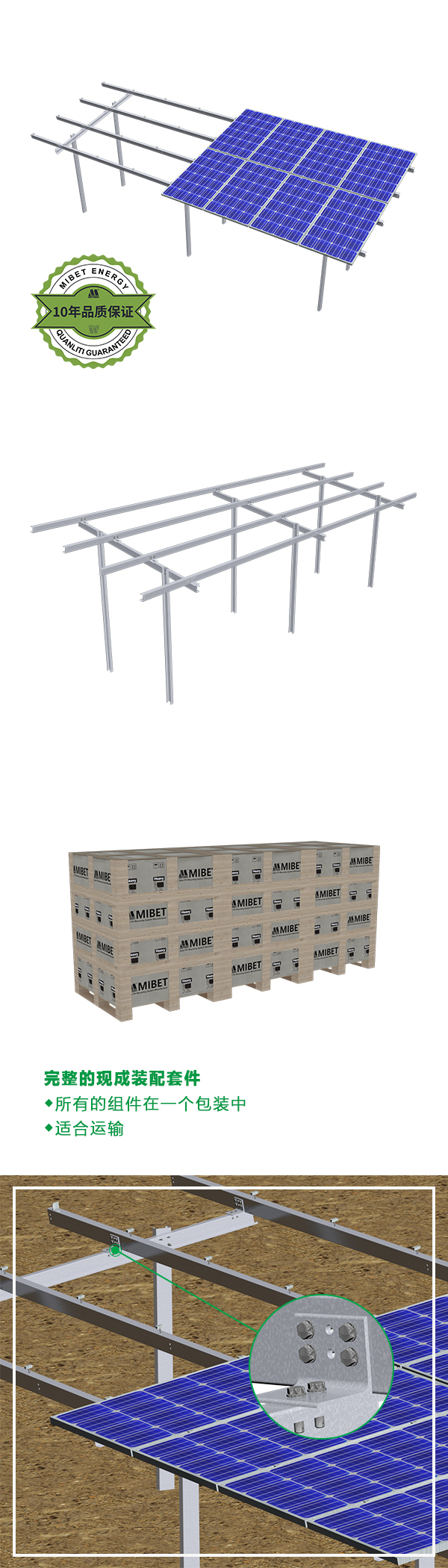 地面光伏支架系統(tǒng)GT7主要由碳鋼材質(zhì)制成,表面采用熱鍍鋅或鍍鎂鋁鋅工藝處理,具有良好的穩(wěn)定性、成型性以及抗腐蝕能力。系統(tǒng)適用于大型商業(yè)及公共事業(yè)電站的安裝。主體采用C型立柱,結(jié)構(gòu)設(shè)計保障系統(tǒng)強(qiáng)度,同時兼顧靈活性和性價比,兼容市面上不同光伏組件。